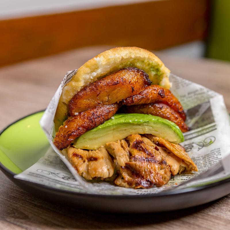 The food was amazing. I ate in restaurant and was greeted by a friendly, smiling face. I loved the color palate inside, so bright and airy. The service was so quick, and the food was amazing. I ordered the 614 Arepa and Cilantro Rice. The favors!